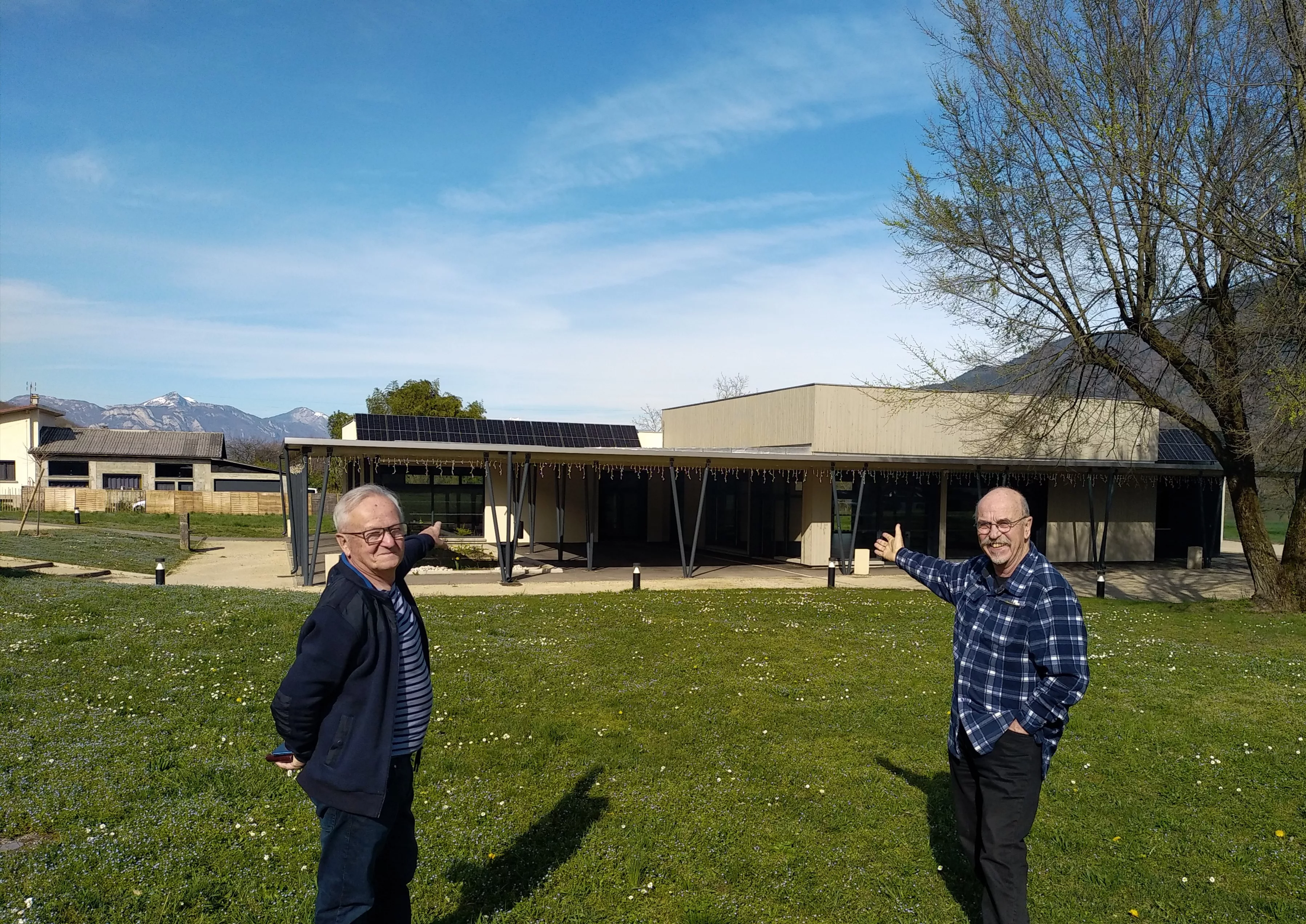 Roland et Jean-Paul ont été les chevilles ouvrières de la pose des panneaux photovoltaïques sur la salle des fêtes de